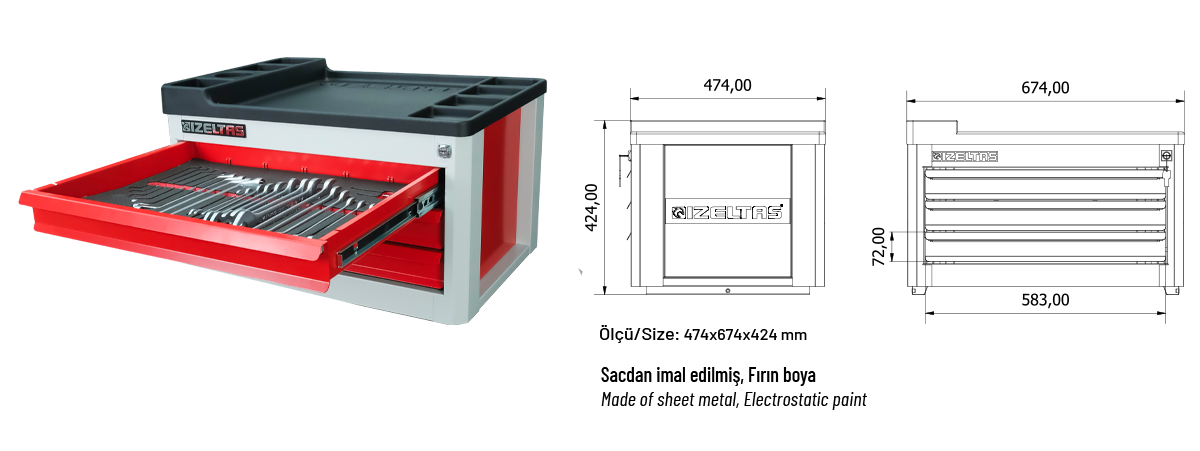 İzeltaş 13000 00 5279 Pro Seri Dolap Üstü Takım Dolabı 3 Çekmeceli